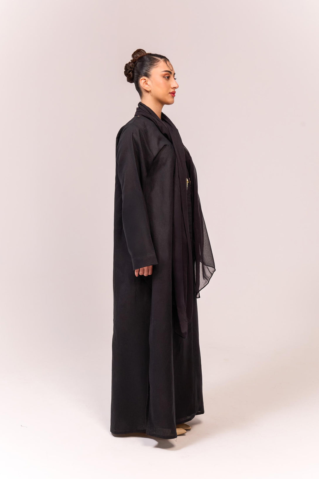 - Composition: 100% Linen (abaya), 100% Cotton (tarha)